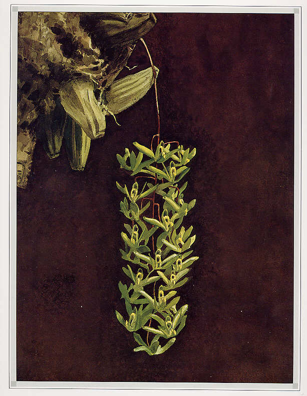 Image at right depicts Cirrhaea dependens, Plate 96 from "The Forgotten Orchids of Alexandre Brun," edited by Phil Cribb.
